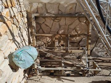 vendo traliccio 9mt carrellato basculante con base con verricello in buone condizioni, da revisionare solo le pulegge del carrello e il rinvio del cavo di acciaio Per info non esitate a contattarmi. Non spedisco ritiro in loco