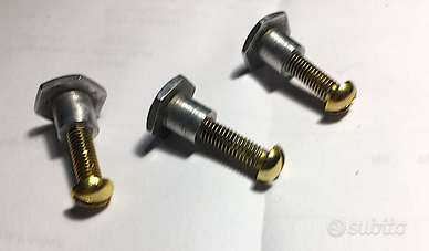 NR 3 Dadi esagonali regolabili in alluminio con le loro viti in ottone, ricambio originale fine anni 60 inizio 70, versione con le viti in ottone a testa bombata, taglio piatto, sono in splendide condizioni (di solito sono ossidate e difficili e/o impossibili da regolare) queste si regolano con facilità, non sono affatto bloccate o dure, permettono regolazioni fini e precise anche al volo, cosa di cui il Transcriptors abbisogna spesso, servono per allineare perfettamente e mettere in piano il motore, i tre dadi regolabili agiscono comprimendo le molle coniche), i ricambi sono in splendide condizioni.