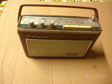 Bellissima radio degli anni Sessanta in pelle bordeaux e stoffa. Da museo ed originale e revisionata con pulizia. Radio portatile a 9 transistor. Solo lievi segni di usura. La radio trasmette in FM, MW, LW e funziona su tutte le bande. Il suono è molto potente e la sensibilità del ricevitore è ottima. Antenna dritta regolabile. Controllo del tono, bassi, volume e selettore. Alloggio inferiore con 5 batterie (tipo C) da 1,5 V o con alimentatore esterno 7,5 volt (non compreso); uscite laterali antenna; alimentazione esterna; cuffie e tutto originale con scheda tecnica in foto. Dimensioni 270x170x77mm peso 2,2 Kg. Vendo ad appassionato. Confezione in foto spedizione a carico acquirente.