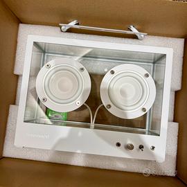 NUOVO - NEW MAI USATO - VENDO CAUSA INUTILIZZO PAGATO - 530€ - Colore articolo: bianco - Altezza: 20.3cm Profondità: 9.5cm Lunghezza: 26.8cm Peso: 3.3kg - Altoparlante di alta qualità - Compatibile con Apple AirPlay, Sonos, Amazon Echo e Google Cast - All’interno può essere compatibile con un modulo di controllo vocale, multiambiente o WiFi di terze parti - Streaming Bluetooth ® e dual speaker "True Wireless" - Alimentatore USB incluso - Solo alimentazione di uscita - Staffe e viti incluse - Amplificatore: Classe D incorporata (attiva) - Potenza di uscita: 2x 15 W. - Volume contenitore sigillato: 3 l - Risposta in frequenza: 60 Hz - 20 kHz ±3 dB sull'asse - High Quality Digital Signal Processing - Composizione: Alluminio, Vetro
