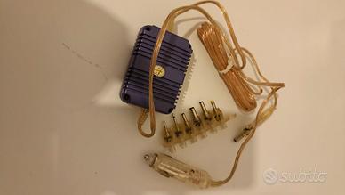 vendo trasformatore 12v da presa accendisigari. uscita in vari voltaggi. numerosi spinotti diversi per ogni tipologia di ingresso. perfetto