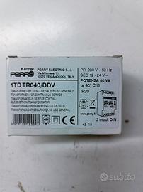 Trasformatore di Sicurezza PERRY 1TD TR040/DDV. Ingresso 230V Uscita 12+12 V con potenza di 40VA.
