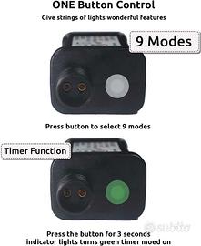 La modalità si cambia tramite il pulsante sulla presa, compatibile con la maggior parte delle luci natalizie.