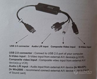Sistema per trasformare i filmati su cassetta vhs o qualsiasi filmato o foto in formato analogico in formato digitale e salvarli su dvd, CD o chiavetta usb. Completo di software di installazione e DVD solution.