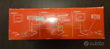 Vendo Causa inutilizzo. La confezione contiene 1 trasmettitore, 2 ricevitori, cavi d'alimentazione e 3 cavi scart/jack audiovideo. No HDMI.