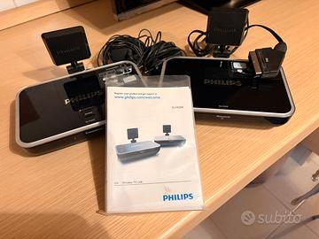 Philips SLV4200/12 è un sistema di trasmissione audio/video wireless che permette di inviare segnali da un decoder, un videoregistratore o un'altra sorgente ad un secondo televisore,