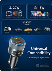 LENCENT Trasmettitore FM Bluetooth 5.1 Auto, Adattatore Bluetooth Auto Radio, Caircatore PD 20W & QC3.0 18W Ricarica Rapida, Lettore Musicale Hi-Fi Stereo Lossless & Bassi Profondi, Chiamata Vivavoce.
