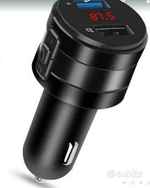 Trasmettitore per autoradio FM di qualsiasi marca, collegamenti al telefono con bluetooth per parlare a vivavoce ed ascoltare musica sull'impianto audio dell'auto, in più ha 2 porte USB per carica cellulare e per lettura memoria di massa da chiavetta USB contenente tracce MP3