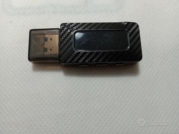Nuovo Trasmettitore FM bluetooth per auto USB, con questa chiavetta USB è possibile collegare via bluetooth lo smartphone e ascoltare la musica o parare a telefono con qualsiasi autoradio, basta impostare la stessa frequenza che si legge sul display dell'unità USB, è inoltre dotata di uscita AUX per collegare le cuffie, un amplificatore o casse attive.