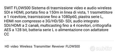 Vendo per inutilizzo trasmettitore/ ricevitore audio video. Professionale. Allego caratteristiche nelle foto. Sdi/ hdmi con le batterie dedicate. Ottimo prodotto uso regia. Valuto proposte con scambio a mano grazie