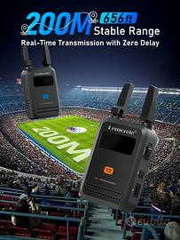 Progettato per cineasti: un dispositivo appositamente ottimizzato per fotografia e video, compatibile con reflex, videocamere e monitor. Grazie al Wi-Fi a 5 GHz, garantisce trasmissione video wireless stabile su lunghe distanze e monitoraggio in tempo reale, ideale per riprese professionali 1 trasmettitore per 4 ricevitori: Supporto multi-ricevitore: un singolo trasmettitore può connettersi contemporaneamente fino a quattro ricevitori — soluzione ideale per registi, personale di regia o installazioni multi-camera che richiedono una collaborazione senza intoppi Antenne pieghevoli – Portabilità e praticità: Realizzate con antenne ribaltabili per massima portabilità e uno stivaggio sicuro, le rendono lo strumento ideale per i creatori sempre in movimento Portata stabile di 200 m e Full HD 60 Hz: Operando sulla banda Wi-Fi a 5 GHz, trasmette in Full HD 1080p a 60 Hz con latenza ultra-bassa (fino a 50 ms) e una portata stabile fino a 200 metri in ambienti aperto MarchioLemorele Tecnologia di connettivitàWi-Fi Caratteristica specialeConnettività wireless, Monitoraggio remoto, Supporto multi-ricevitore, Portata wireless lunga Risoluzione1080p Servizi Internet supportatiYouTube, Twitch ColoreNero Nome modelloR5000 Dimensioni del prodotto40L x 50l x 30H mm Dispositivi compatibiliPersonal, Proiettore, Laptop, Tablet, Smartphone Risoluzione uscita video1080p pixels Ritiro anche a mano disponibile.pagamento alla consegna