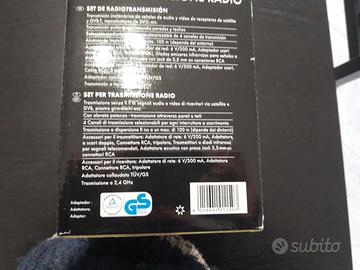 Vendo set completo, con tutti accessori di trasmettitore senza fili per audio e video. Consente di collegare apparecchi satellitari, DVB, piastra gira dischi ecc. anche in stanze diverse o trasmettere il segnale dell'antenna ad un televisore posto distante dalla presa fino circa 100metri, tra pareti e tetti. Nuovo, mai usato con istruzioni ed in confezione originale.