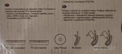 Trasmette segnale dal TV1 a TV2, da una stanza ad altra, anche segnale dal decodificatore Satellitare, video registratori etc, tramite WiFi.