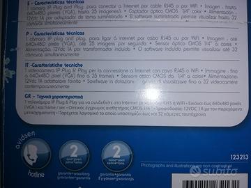 - 1 telecamera IP a cupola Plug and Play, da connettere a Internet tramite cavo RJ45 o WiFi
