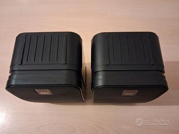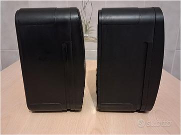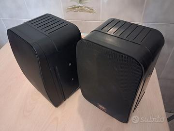 Ottime casse, da scaffale o da muro, di piccole dimensioni, ma con suono molto equilibrato e BASSI PROFONDI, tenute molto bene. (osservare bene le immagini) I Woofers sono da 12 cm. e i Tweeter, da 1,8 cm. Caratteristiche Potenza consigliata: 50W RMS, max 100W musicali Risposta di frequenza effettiva: 50-20KHz. Dimensioni: cm. 15x13,5x23H Peso: Kg. 2 circa cadauna