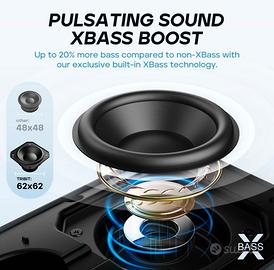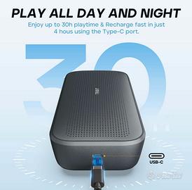 Odissea musicale di 30 ore: Grazie alla rivoluzionaria tecnologia RunStretch, la nostra cassa bluetooth portatile offre una straordinaria durata della batteria di 30 ore con Xbass spento (24h con Xbass acceso). Non lasciate che i viaggi vi impediscano di ascoltare i vostri brani preferiti. Ricarica rapidamente con la porta Type-C, solo 4 ore per ricaricare completamente la cassa bluetooth da esterno!