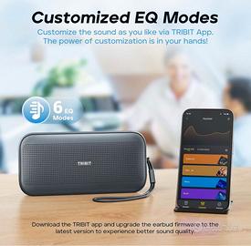 Modalità di equalizzazione personalizzate: La cassa StormBox Flow può personalizzare il suono tramite l'app Tribit per adattarlo alle vostre preferenze e all'ambiente di ascolto. Grazie alla connessione ultra-stabile Bluetooth 5.3 fino a 30 metri di distanza, la nostra cassa wireless è ideale per le avventure all'aperto, compresi i momenti di serenità in giardino.