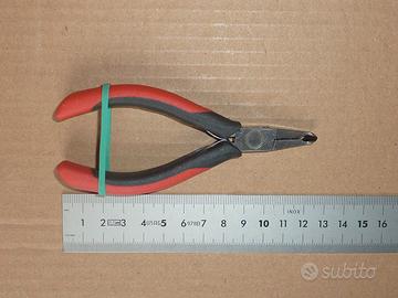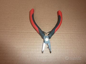 Tronchese con testa stretta inclinata a 70° e taglio raso Usag art. 036, robuste molle a lamina per la riapertura dei manici, rivestimento antiscivolo. Articolo di elevata qualità, realizzato in acciaio cromo vanadio e lame temprate, dotato di un giunto scatolato con perno rotante su anello in ottone per un funzionamento regolare e costante nel tempo, made in Italy, in perfette condizioni di funzionamento con taglienti integri. La tronchese serve per tagliare metalli a bassa durezza (rame, alluminio, ottone, ecc), con un taglio perfettamente a filo, avendo la testa a punta rastremata è ideale per i componenti delle schede elettroniche più difficili da raggiungere. Consente anche di tagliare articoli in materiale sintetico (resina e plastica in genere) senza lasciare sporgenze sulla superfice, ideale per separare e rifinire action figure (Bandai, Banpresto, Max Factory, Megahouse, Goodsmile, Kotobukiya) e modellismo vario. Dimensioni tronchesina: lunghezza effettiva 125mm, lunghezza taglienti 7mm. Disponibili anche set valigette stagne, frese e punte in carburo di tungsteno o diamantate adatte per penne smerigliatrici e mini trapani Dremel/Parkside, mini trapani manuali cuscinettati, forbici elettricista / cutter Workpro, tronchesi taglio raso per elettronica e plastica varie marche, tranciacavi tagliafuni. pinze per puntalini a cricchetto 0,5-2,5mmq Wurth, frese coniche HSS made in Germany, squadre acciaio, micro moschettoni inox 20mm, punte trapano SDS o liscio, lame seghetto alternativo, cacciaviti corone e frese per acciaio/muro ed altre attrezzature Wurth, Bosch, Usag, Beta, Laoa, Hitachi e varie marche tedesche, estrattori cuscinetti RC, batterie al litio 18650 con o senza PCB, cavi extra flessibili con isolamento in silicone da 24AWG fino a 6AWG, connettori QS8 ed Amass XT60H – XT90NE-F – XT60E-F – MR30, basette JST-XH 2-6S e 2-8S, è possibile vederne alcuni con l’app di subito cliccando su “Annunci online”, per altre attrezzature chiedere disponibilià.