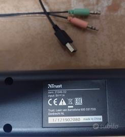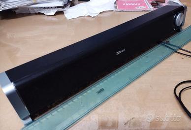 TRUST soundbar di dimensioni contenute.Lunghezza 46 cm. Suono stereofonico con interessanti frequenza basse. Si collega con cavo USB e con cavo jack compresi. Perfettamente funzionante.Apparecchio quasi vintage inizio anno 2000. Per collezionisti.Spedizione tramite circuito TUTTOSUBITO.