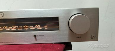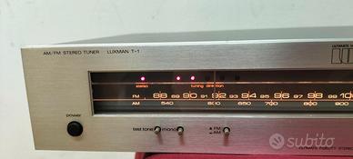 Il Luxman T-1 è un sintonizzatore stereo analogico AM/FM vintage di alta qualità, prodotto tra il 1980 e il 1982, noto per la sua costruzione robusta e prestazioni affidabili. Caratterizzato da una scala analogica, offre una sensibilità FM di1,9 uv e un rapporto segnale/rumore di75 db, garantendo un suono nitido, come descritto nelle specifiche suFacethesound Ecco le specifiche tecniche dettagliate delLuxman T-1: Tipo:Sintonizzatore Mono/Stereo analogico Bande di sintonia:FM, MW (AM) Risposta in frequenza FM:30Hz - 15kHz Sensibilità FM: Rapporto segnale/rumore:75dB (FM), 50dB (MW) Distorsione armonica totale (THD):0.5% (FM) Selettività:75dB Uscita:700mV (FM) Dimensioni:438 x 312 x 85 mm Peso:Circa 5 kg - 5,5 kg