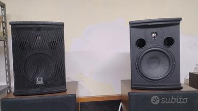 Turbosound TCS-35 coppia diffusori due vie professionali , con woofer da 8" (precision Devices), e tweeter al titanio (Audax). i diffusori sono stati appena controllati elettricamente e' sono in ottimo stato di funzionamento. solo un po vissuti .potenza max 400 watt, 200 watt RMS, 8ohm, 90 db 1watt, 121 db max spl.