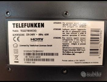 Vendo per inutilizzo TV 22 pollici telefunken te22275b30cxg. 1920x1080 full HD completa di telecomando. presa HDMI e scart. Ritiro s Sant' Alessio con Vialone o a Pavia