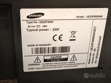 Causa trasloco vendo per inutilizzo TV marca Samsung da 22 pollici perfettamente funzinante; telecomando usurato.
