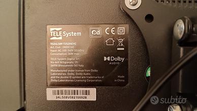 Tv 24" Tele System, dotata di braccio snodato per fissaggio a parete e doppio telecomando. Preferibile consegna a mano, ma se occorre posso spedire.