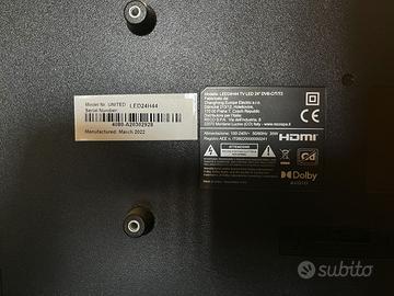 TV LED United modello LED24H44 Schermo da 24 pollici Risoluzione HD Ready 1366x768 Sintonizzatore digitale terrestre DVB-T2 integrato 2 porte HDMI 1 porta USB Slot CI+ per CAM Funzionante e in buone condizioni
