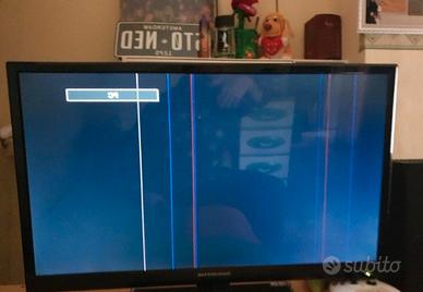 Funzionante ma con alcune righe sullo schermo che si notano soprattutto quando è nero. Lo schermo è leggermente inclinato in avanti. Completo di decoder