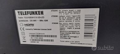 Vendo tv telefunken perfettamente funzionante con telecomando full hd con ingressi hdmi e usb. Prezzo non trattabile contattare solo se realmente interessato all'acquisto.