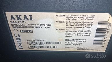 VENDO TV 32 POLLICI LED MARCA AKAY MOD.TVL321 PERFETTAMENTE FUNZIONANTE COME DA FOTO ALLEGATE, LA TV E FORNITA DI PIEDE DAPPOGGIO E TELECOMANDO.