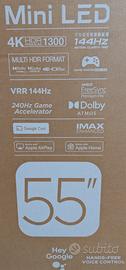 TV Mini LED TCL 55C805 Come nuovo, utilizzato per 4 mesi circa. Incluso telecomando, cavo di alimentazione. Confezione originale. Non si spedisce.