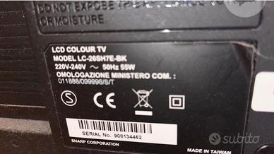 Vendesi La TV in foto è una Sharp LCD Colour TV – modello LC-26SH7E-BK, un 26 pollici HD-Ready (non Full HD), consumi 55W, produzione circa 2008–2010. A euro 100 causa scarso utilizzo.