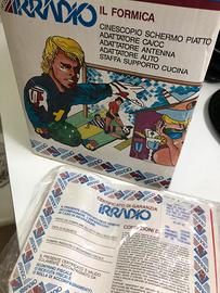 Nuovissimo minitelevisore portatile Irradio bianco&nero 12V,acquistato nel 1987 usato due volte poi deposto nella sua confezione originale.L’articolo e perfettamente funzionante,non ha un graffio,colore rosso porpora,corredato da antenna telescopica,1 jack per antenna terrestre,1 jack CA/CC, 1 filo (presa accendisigari)per auto,alimentatore originale,ingresso cuffie.Vendo x amatori o collezionisti a euro 100.00,visibile per consegna a mano presso capodichino napoli