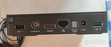 TV box android 4k Tim vision, 32gb di memoria, ingresso microsd, porte 2.0 e 3.0, attacco antenna TV, sistema android, completo di scatola, telecomando e alimentatore tutto in ottime condizioni. non si accende il led davanti del logo all'improvviso, ma funziona perfettamente