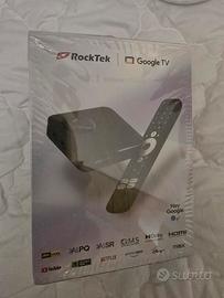 Vendesi tv box Rock Tek GX 1, in condizioni nuovo imballato quale regalo duplice non gradito. CARATTERISTICHE: Migliora il tuo intrattenimento domestico con RockTek GX1, un potente decoder UHD Google TV che combina streaming 4K all'avanguardia, Dolby Vision HDR e Google TV 12 per un'esperienza di intrattenimento senza pari. Progettato per migliorare lo streaming, il gaming e la fruizione multimediale, RockTek GX1 è compatto ma ricco di funzionalità, il che lo rende il complemento perfetto per qualsiasi sistema di intrattenimento moderno. Il cuore del RockTek GX1 è il processore Realtek RTD1325TPV, una CPU ARM Quad-Core Cortex-A55 a 64 bit, che offre prestazioni di alto livello con una capacità di 20.000 DMIPS. In combinazione con la GPU ARM Mali-G57, questo dispositivo garantisce immagini fluide e tempi di risposta rapidissimi. Supportando Google TV 12 (con aggiornamenti futuri previsti per Google TV 14), il GX1 offre un'interfaccia utente intuitiva e fluida per tutte le esigenze di intrattenimento. Dotato di 4 GB di RAM DDR4 e 32 GB di storage eMMC, il GX1 offre ampio spazio per app, contenuti multimediali e giochi, garantendo al contempo un multitasking fluido. Il suo design ultracompatto e l'hardware di alto livello lo rendono un upgrade essenziale per un centro di intrattenimento ordinato. RockTek GX1 eccelle nell'offrire un'esperienza di intrattenimento di alta qualità. Il chipset Realtek RTD1325TPV garantisce prestazioni rapide ed efficienti, mentre il suo supporto codec avanzato, tra cui AV1, VP9, H.264 e HEVC (H.265), offre una riproduzione fluida di contenuti ad alta risoluzione fino a 4K a 60 fps. Le certificazioni Widevine Livello 1 e HDCP 2.3 garantiscono un accesso sicuro ai servizi di streaming premium. Per un'esperienza davvero immersiva, RockTek GX1 supporta Dolby Vision HDR, HDR10 e HDR10+, offrendo colori vivaci e dettagli nitidi. L'integrazione di Dolby Atmos e Dolby Audio garantisce una qualità audio superiore.