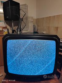 Televisore a colori anni 80 Brionvega con antenna originale ruotante controllata dal telecomando della TV. Design originale, molto speciale per l'epoca. Perfettamente funzionante.
