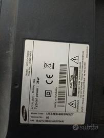 Modello UE32EH4003WXZT schermo TV LED Dimensioni 32 pollici (81,28 cm) Risoluzione HD Ready porta USB 2 ingressi HDMI, Sistema audio: Dolby Digital Plus, Dolby Pulse, SRS TheaterSound. Smart modes: Game. Televideo: 1000 Risoluzione: 1366 x 768 Pixels. Tipo sintonizzatore: Analogico & Digitale, Formato del segnale digitale: DVB-C, DVB-T, no smart tv, non ho il telecomando e ne piedistallo ma è compatibile con staffa VESA per metterla a muro