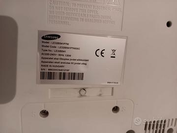 Vendo TV Color SAMSUNG 32” colore bianco, con telecomando originale e supporto per appoggio su piano. TV perfettamente funzionante. No SMART.