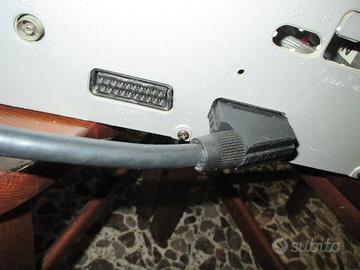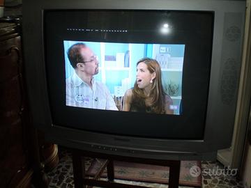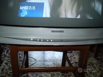 Televisore a colori marca "Toshiba" 32 pollici color grigio-argento con tubo catodico funzionante con decoder esterno e 2 prese scart, con il quadro appena ristretto (come da foto). Disponibili, per inutilizzo, altri riproduttori audio/video tra cui 1 tv smart, 1 tv mini portatile, 1 proiettore All-8 anni 60 con schermo, alcune macchine fotografiche analogiche, 1 macchina fotografica e 1 videocamera digitali, telefoni analogici anni 60-70-80 e telefoni digitali anni 90-2000, 1 centralino telefonico Allocchio Bacchini degli anni 30.