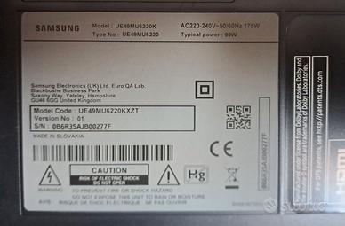 Tv samsung 49 pollici con display rotto per ricambi codice UE49MU6220KXZT. Disponibili scheda di alimentazione, tasto accensione + modulo infrarossi, modulo wifi, pannello retroilluminato, card slot, altoparlanti. Prezzo indicativo