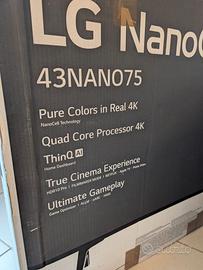LG TV LED Ultra HD 4K 43" 43NANO756PR Smart TV. Processore Quad Core 4K, Wi-Fi, webOS 6.0, FILMAKER MODE, Game Optimizer, Google Assistant e Alexa Integrati, Telecomando Puntatore. Cedo per trasloco. Usato pochissimo dal 2024. In perfette condizioni. Imballato.