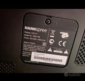 Marca HANNSPREE, funzionante con telecomando e cavo di alimentazione. Venduto con cavo scart ed HDMI.