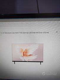Vendo piccolo TV 24 pollici nuovo mai usato a 100 euro, immagini nitide con colori stupendi, adatto per camerette bambini o cucina o come monitor pc, con possibilita' di appenderlo a parete, non spedisco, solo consegna a mano zona acireale-giarre-fiumefreddo, tel: 3737198368