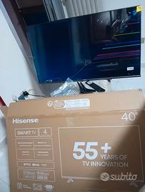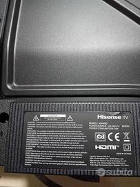 VENDO TV HISENSE 40 POLLICI SMART COME PEZZI DI RICAMBIO. LA TV E PRATICAMENTE NUOVA COMPLETA DI SCATOLA TELECOMANDO E PIEDI DI APPOGGIO,MA DYSPLAY ROTTO. MODELLO: 40A49Q ANNO 2025 POSSO ANCHE SPEDIRE A CONDIZIONI CHE MANDATE VOI IL CORRIERE.