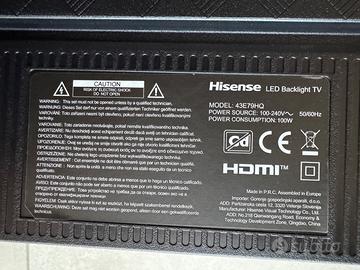 Vendo TV Hisense da 43 pollici 4k, modello 43E79HQ. Come si vede dalle foto é stato lesionato lo schermo, tuttavia la tv internamente é tutta funzionante. Vendo con telecomando non originale.