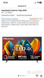 Vendo TV 43” Q led 4k Smart TV come nuovo acquistato agosto 2025 vendo per cambio arredamento