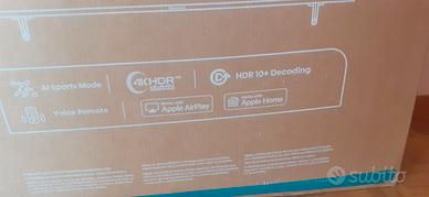 In perfette condizioni,come nuova, usata pochissimo in una seconda casa. Completa di staffe da parete e piedi per appoggio. Completa di scatola originale e protezioni in polistirolo originali Smart TV QLED 4K da 55 pollici che offre un'esperienza visiva e sonora di alta qualità. Dotata di un pannello QLED e supporto per Dolby Vision, HDR10+ e HLG, garantisce immagini con colori vivaci, contrasti profondi e dettagli straordinari in risoluzione Ultra HD 4K (3840x2160). Il suo design senza cornici massimizza l'area di visualizzazione, immergendoti completamente nei contenuti. La piattaforma Smart TV VIDAA U8 con oltre 1000 app ti offre accesso illimitato all'intrattenimento, mentre l'audio Dolby Atmos a 20W ti avvolge con un suono tridimensionale. Completa la connettività AirPlay2, Android Screen Sharing, Bluetooth 5.0, Wi-Fi ed Ethernet, insieme a 3 HDMI (2 ARC) e 2 USB