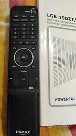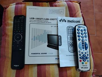 TV LCD 19" Humax tenuto sempre coperto, completo di custodia in stoffa cucita a mano (in regalo), completa di ben 2 telecomandi, il suo e uno della Meliconi (vedi foto). Libretto di istruzioni incluso. Ritiro a Genova Sestri Ponente, Brignole, Centro.